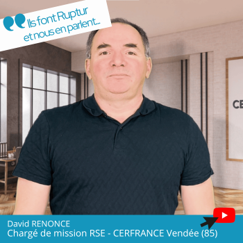 Membre de Ruptur depuis 2019, David Renoncé – Chargé de missions RSE au Cerfrance vendée (85) nous raconte son parcours au sein de Ruptur, notamment son expérience pour « aller vers le juste déplacement professionnel » dans le cadre du chantier mobilité. Il explique que les méthodes de l’association lui ont permis de repartir avec du concret pour mettre en place une nouvelle politique de mobilité dans son entreprise. Il encourage d’ailleurs tous ceux qui hésitent à rejoindre l’association à venir essayer.