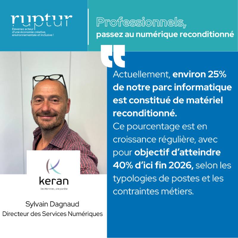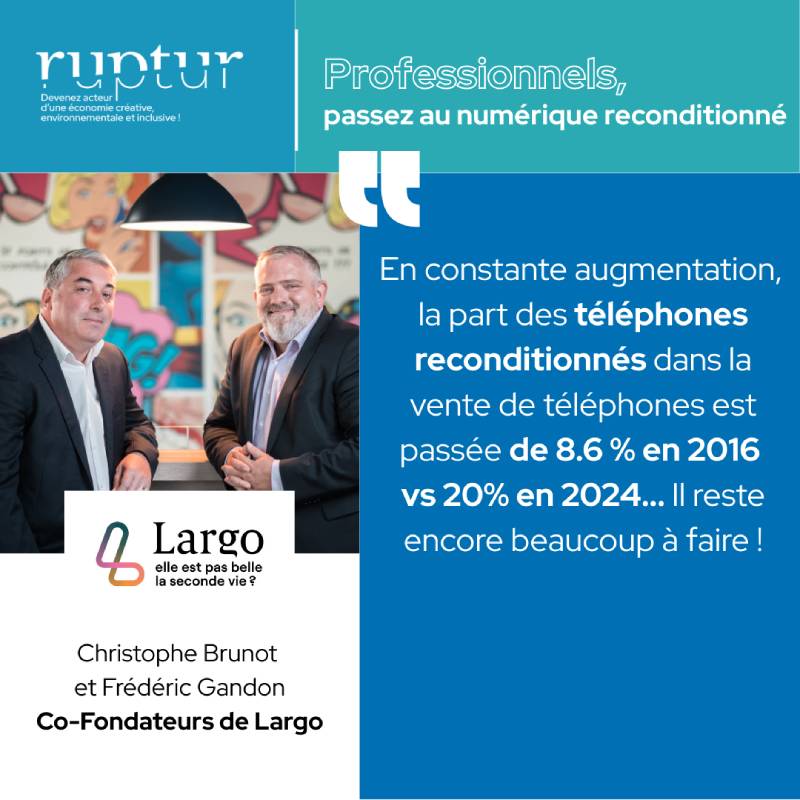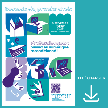 Pour accélérer la transition, encore faut-il outiller les acteurs, leur donner des repères clairs, des arguments solides, des exemples qui font preuve. Ruptur a mobilisé son réseau pour décrypter et expérimenter sur le sujet. Fruit d’une démarche collective ouverte qui rassemble 11 structures d’horizons variés : 9 adhérents et 2 partenaires extérieurs, des TPE, PME, ETI et collectivité, le décryptage Ruptur « Professionnels, passez au numérique reconditionné » garantit une vision à 360° des leviers et obstacles à surmonter pour faire du reconditionné une norme plutôt qu’une exception.